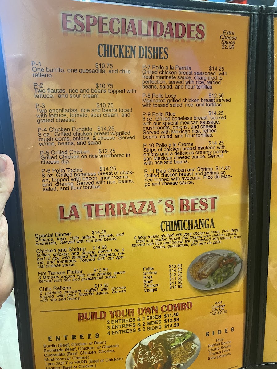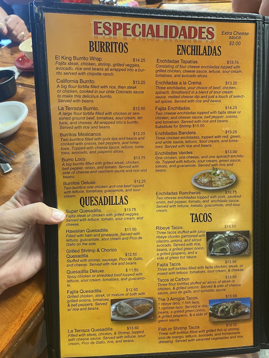 La Terraza's menu features mouthwatering options for both lunch and dinner. For lunch, indulge in a Taco Salad Fajita or relish the flavors of a Cheese Steak, each priced affordably at $5.49. Dinner selections continue the delicious journey, with choices like the Pollo Fundido or Steak Mexicano, thoughtfully priced to ensure satisfaction without breaking the bank.